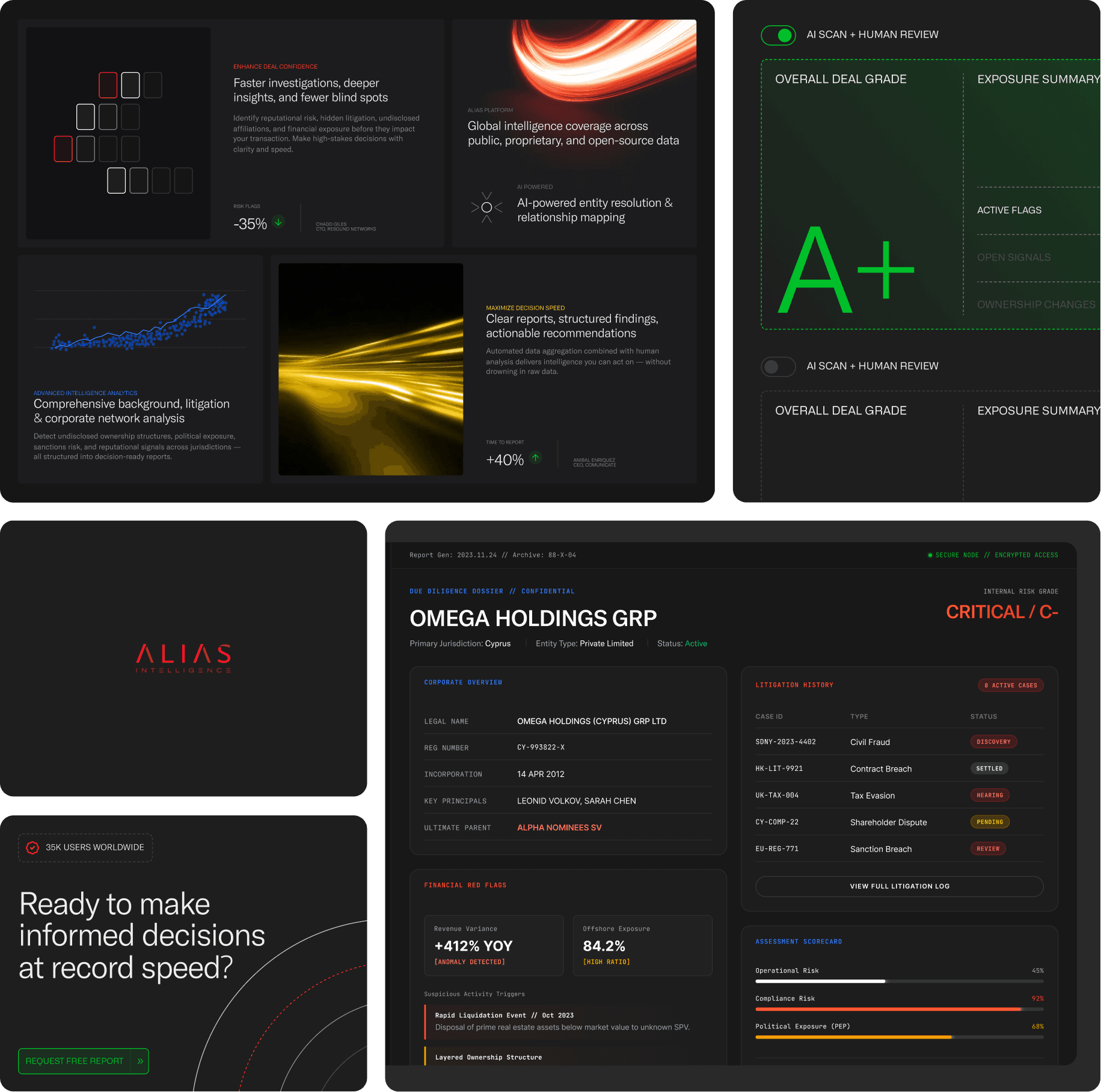 Alias Intelligence is a modern due diligence platform helping investors, law firms, and deal teams make high-stakes decisions with clarity. One of the first things they mentioned was that in this world, speed matters, but trust matters more. The challenge wasn’t just aggregating data, it was turning fragmented signals into something credible and decision-ready.